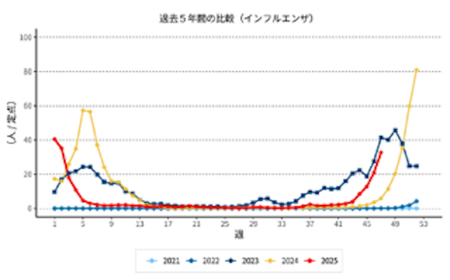 さて現在、福岡県発表の定点当たりのインフルエンザ報告数は30を超えており、久留米市でも11月28日にインフルエンザ流行警報は発表されました。インフルエンザはB型も含めて例年3月頃まで流行が続くため早めの予防が大切です。